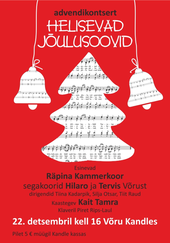 Ürituse nimi: Advendikontsert "HELISEVAD JÕULUSOOVID" - segakoorid Hilaro ja Tervis, Räpina Kammerkoor ning Kait Tamra
