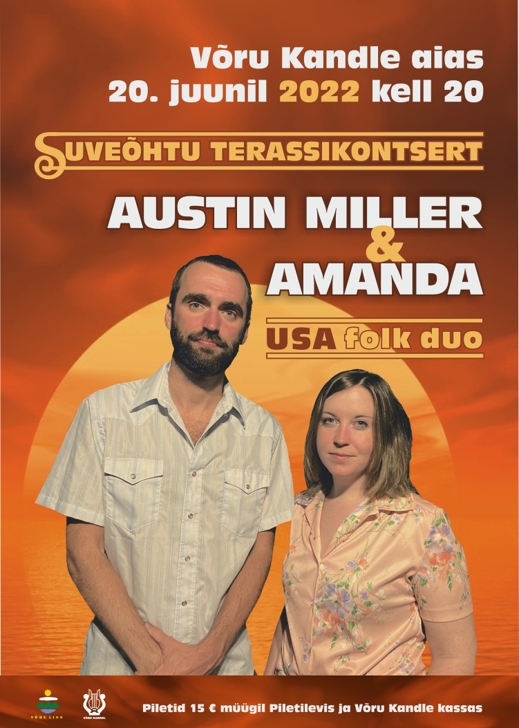 | Ürituse nimi: | Kandle aias: Suveõhtu terassikontsert - AUSTIN MILLER & AMANDA, USA folk duo |