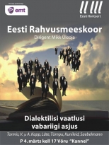 „Dialektilisi vaatlusi vabariigi asjus“ RAM, dirigent Mikk Üleoja Tormis, V. ja A. Kapp, Läte, Türnpu, Kunileid, Saebelmann Pilet 6.- sooduspilet 4.- (õpilased, tudengid, pensionärid)