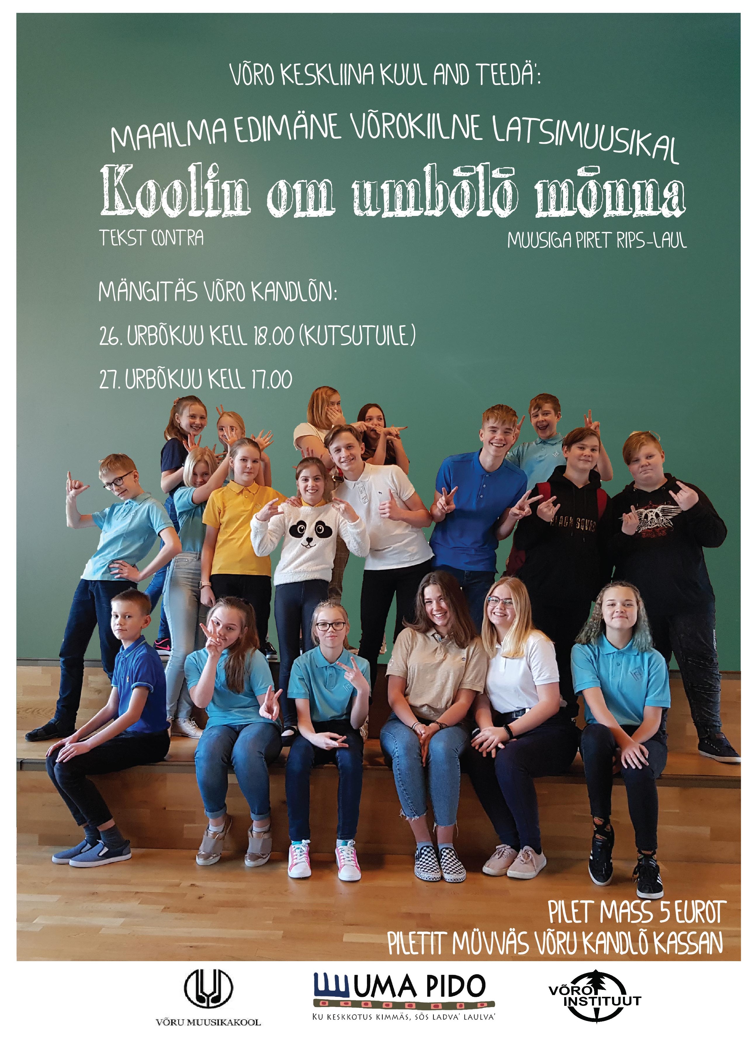 Võru Kesklinna Kooli õpilastel on aastatepikkune traditsioon tuua lavale muusikale. Sel aastal valmis koostöös Uma Pido meeskonnaga, Võru Muusikakooliga ja Võru Instituudiga uus originaaletendus - võrukeelne lastemuusikal "Koolin om umbõlõ mõnna".