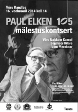 | Ürituse nimi: | Mälestuskontsert: PAUL ELKEN 105 |
