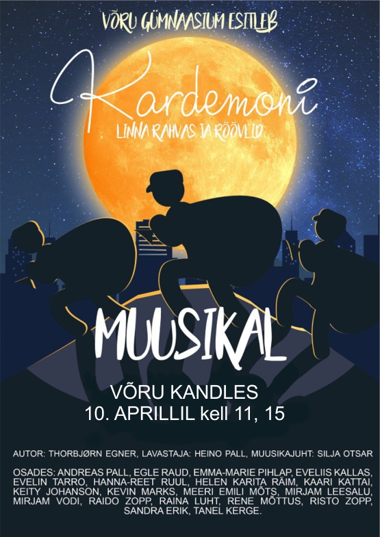 | Ürituse nimi: | Võru Gümnaasiumi muusikal "Kardemoni linna rahvas ja röövlid" |