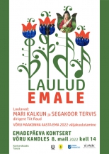Ürituse nimi: Emadepäeva kontsert „LAULUD EMALE”. Laulavad: Mari Kalkun ja segakoor Tervis