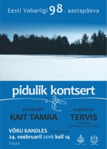 Ürituse nimi: Eesti Vabariigi 98. aastapäeva pidulik kontsert. Esinevad KAIT TAMRA ja SEGAKOOR TERVIS.