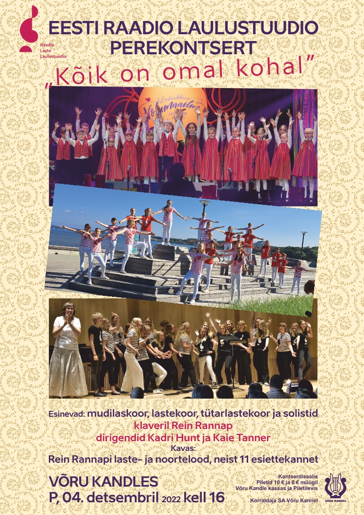 | Ürituse nimi: | EESTI RAADIO LAULUSTUUDIO perekontsert "Kõik on omal kohal" |